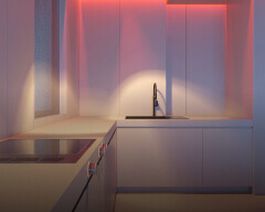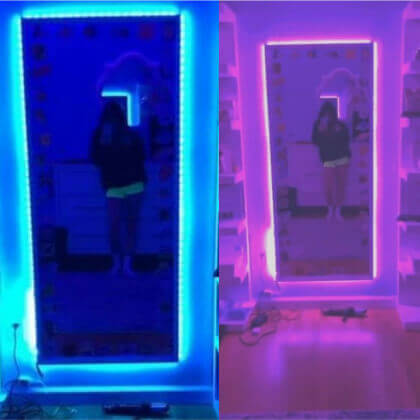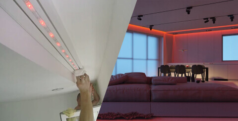 Подчеркивает и выделяет необходимые детали комнаты, а пульт дистанционного управления позволяет выбрать стиль. освещение в соответствии с выбранными предпочтениями и настроением. Ленту может установить даже ребенок!